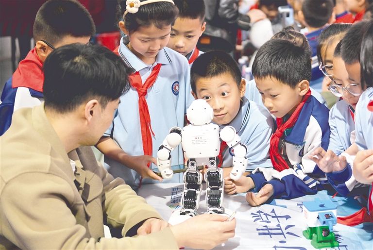 4月17日,呼和浩特市玉泉區(qū)通順街小學(xué)“妙想啟智 科創(chuàng)同行”第一屆主題科技節(jié)開幕?,F(xiàn)場機(jī)器人互動、科創(chuàng)作品展、科普劇表演、科技大篷車等豐富多彩的活動,引導(dǎo)學(xué)生將科技知識與生活實(shí)際結(jié)合,在沉浸式體驗(yàn)與實(shí)踐中觸摸科技神奇,點(diǎn)燃科創(chuàng)夢想。草原云·正北方網(wǎng)記者 王磊 攝